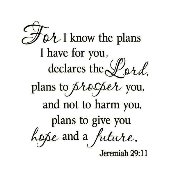Newclew for I Know The Plans I Have for You declares The Lord Plans to Prosper not to harm You Plans to give You Hope and a Future- Jeremiah 2911 Wall Art Sticker Décor Decal M 22x12. Plans for your welfare and not for harm to give you a future with hope. Choose a frame that works for your décor and style.