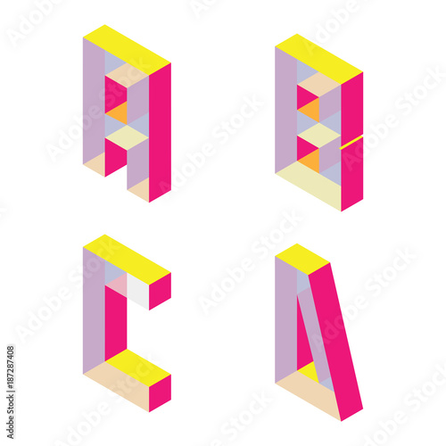 Bright Isometric Font With Transparent Parts English Letters A B C D Isolated On White Good For Lettering And Design Stock Vector Adobe Stock