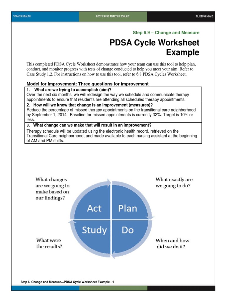 6 9 Pdsa Cycle Worksheet Example 1 Nursing Therapy