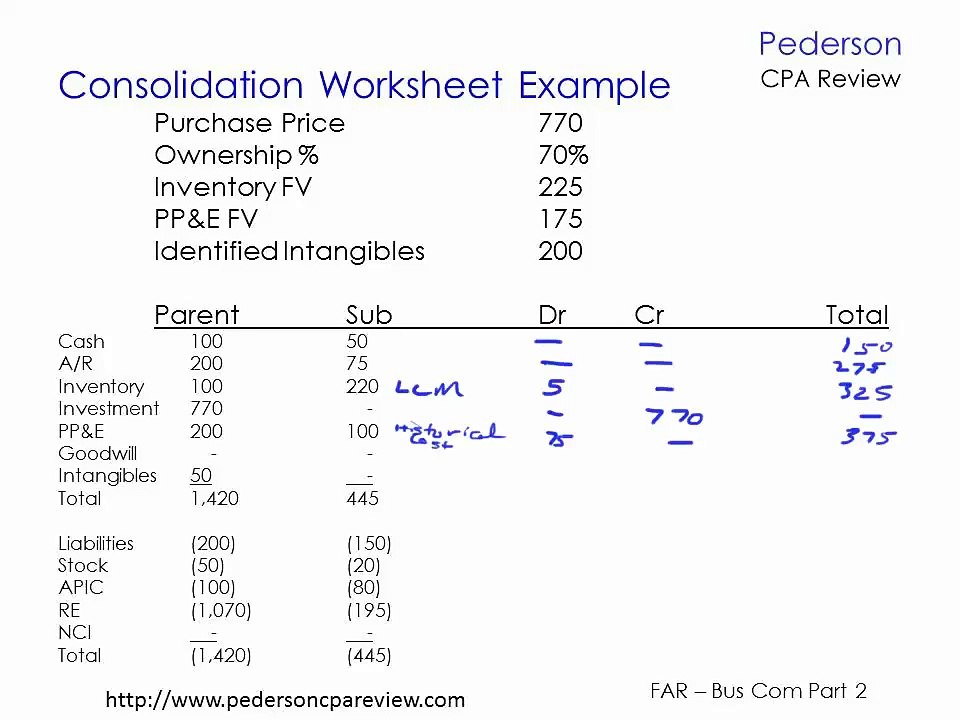 Cpa Exam Business Combinations Consolidation Worksheet Example Updated Video Dailymotion