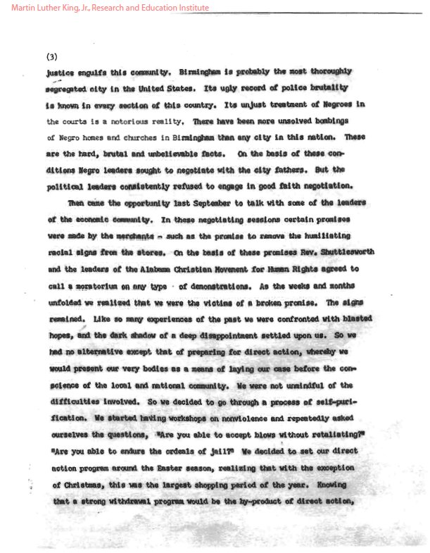 Lesson Plan Letter From Birmingham Jail The Power Of Nonviolent Direct Action The Martin Luther King Jr Research And Education Institute