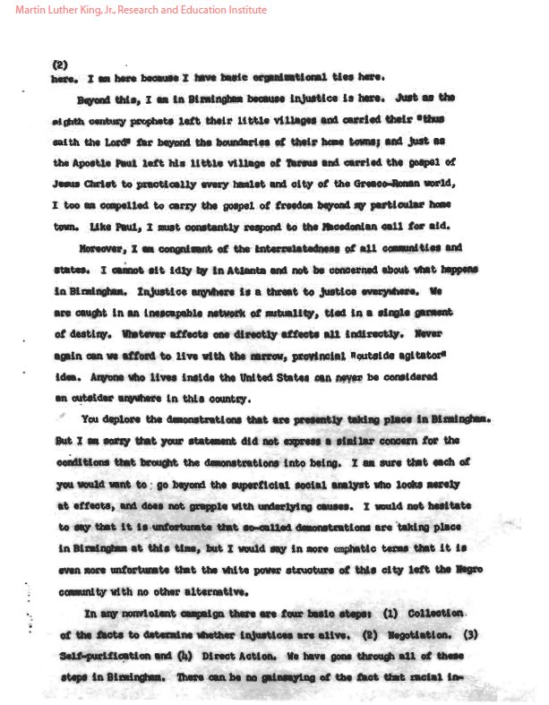 King A œletter From Birmingham Jail Usc Rossier Staff