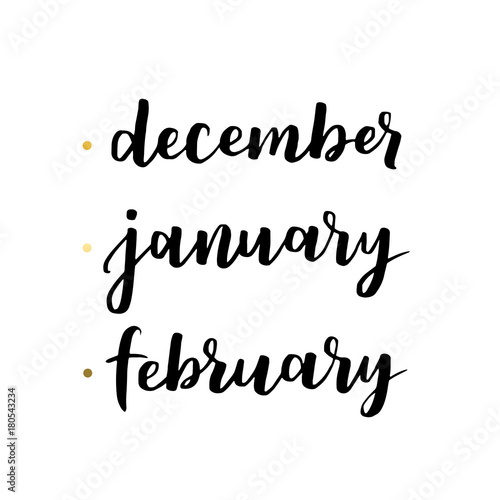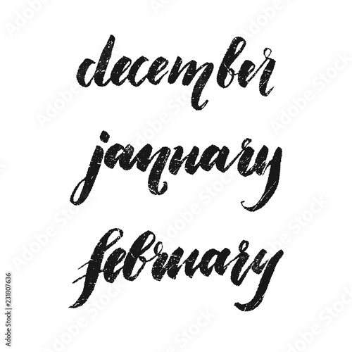 Vector Lettering With Winter Months December January And February Hand Written Brush Inscriptions Seasonal Organizer For Your Design Stock Vector Adobe Stock