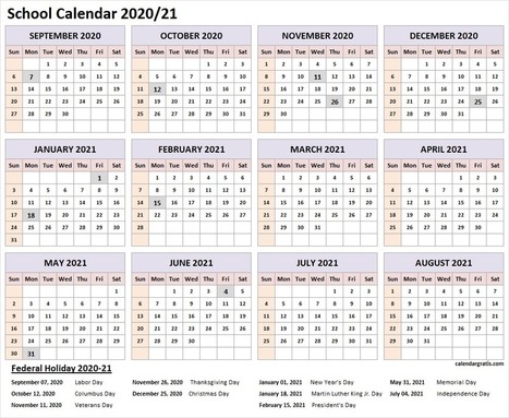 2020 2021 School Calendar Template Academic Calendar 2020 21