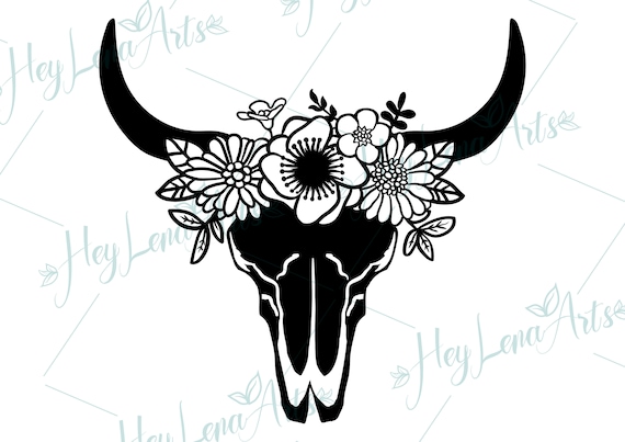 Cow Skull With Flowers Svg File Cow Skull Svg File Cow Skull Etsy Cow Skull Flower Skull Longhorn Skull