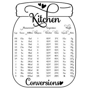 Kitchen Conversion Chart Svg Kitchen Svg Mason Jar Svg Etsy