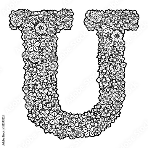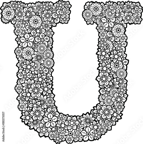 Flowers Doodle In The Letter U Vector Clipart Serie 21 26 Stock Vector Adobe Stock