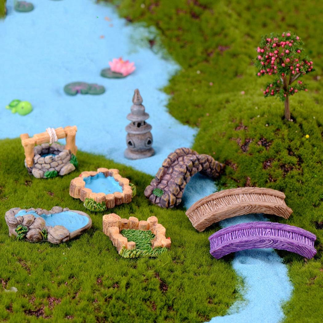 Garden Micro Landscape Lawn Mountain Stream Bridge Well Lawn Decor For Micro Fairy Garden Miniature Terrarium