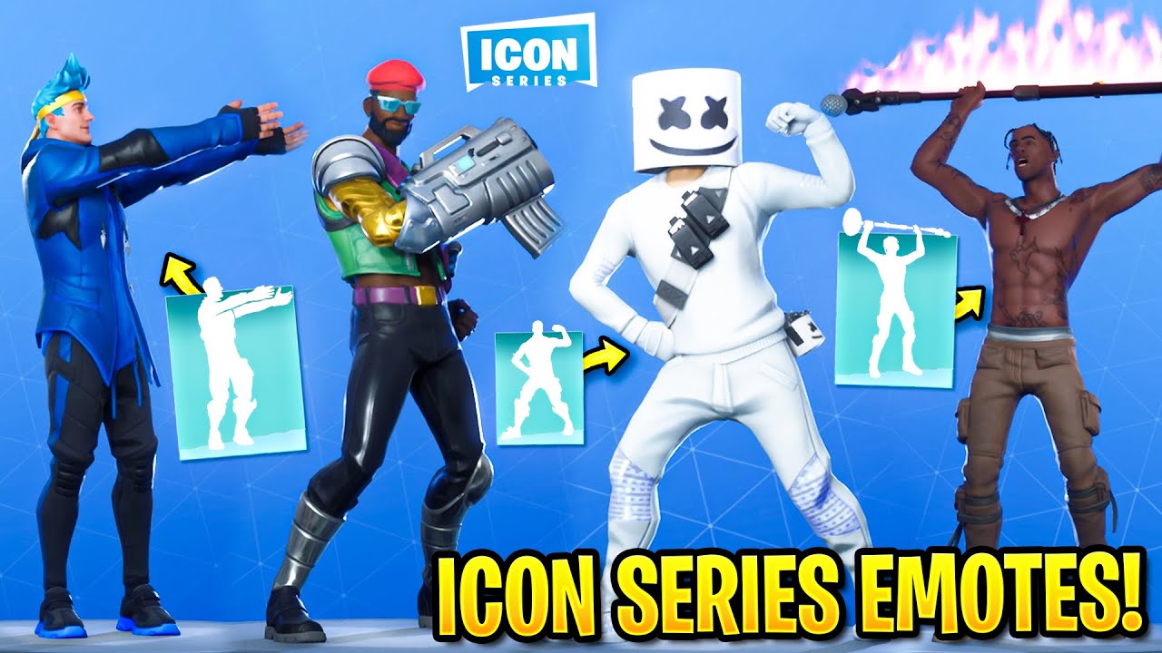 Icon series emotes fortnite. As mentioned before the entire set of Icon Series emotes has made it back to the item shop. In this Video You Can See All Icon Series Fortnite Dances EmotesCrazyboy Ninja Style. Fortnite has been collaborating with Internet Personalities and Celebrities to bring skins and emotes to the game.