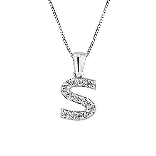Amazon Com Rhodium Plated 14k White Gold Diamond Initial Letter S Necklace 16 Inches 3 Inch Extension Gh I1 1 6 Ctw Women S Statement Necklaces That Begin With S From The Men S Jewelry Store