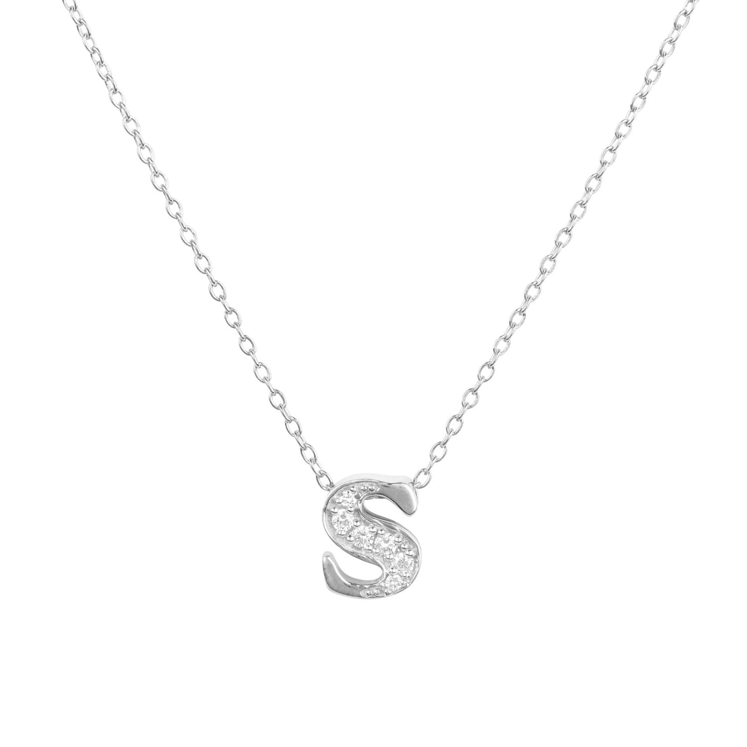 Buy Pave Set Cursive Letter S Initial Diamond Necklace In 14k White Gold Online Diamond Delight