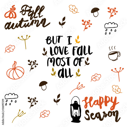 Hand Drawn Autumn Quotes And Brush Lettering Words Insppirational Season Design With Calligraphy And Autumn Doodle Icons Leaves Stock Vector Illustration Of Calligraphy Modern 191492923
