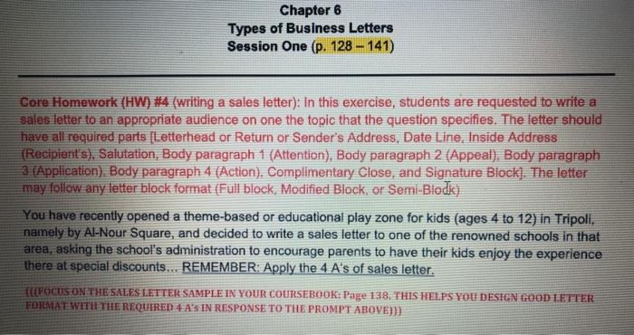 Solved Chapter 6 Types Of Business Letters Session One P Chegg Com