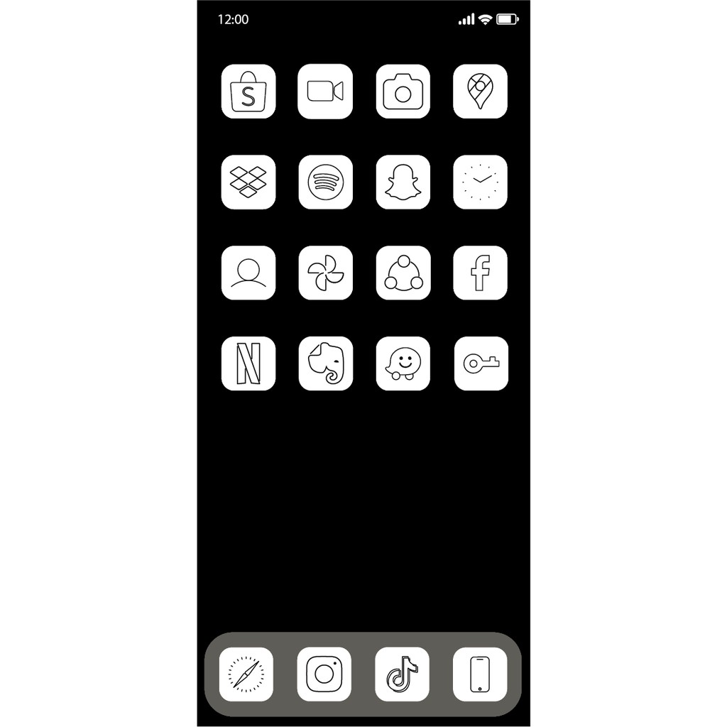 - 1 ZIP file containing 200 high-resolution PNG App Icons - 1 PDF with Step-by-Step Instructions See last image in listing for all App Icons. Black Edition App Icons Pack For iPhone iOS 14 Minimal Black App icon Theme Black On White Thin Filled Icons Alphabet And Photo Widgets May 2021 Instantly download these Black Edition App Icons 10 Wallpapers 28 Bonus Alphabet Widgets Icons to personalize your iPhone Home Screen iOS 14 and create your own aesthetic look. 320 White Icons w Background.